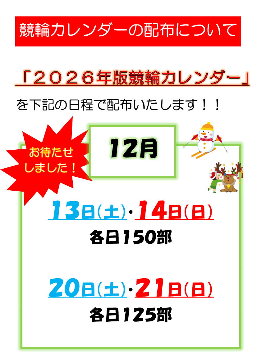 「2026年版競輪カレンダー」について、下記の通り配布いたします。