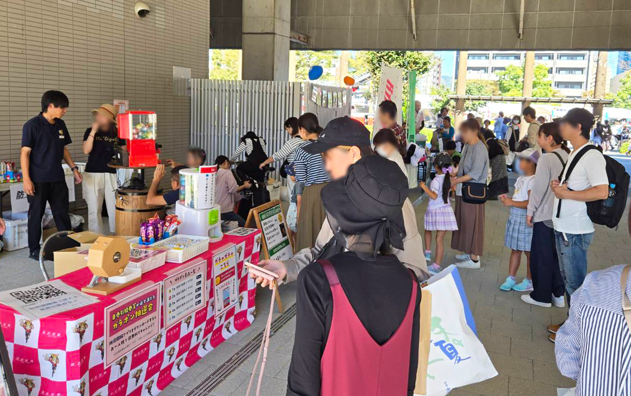 防府競輪ブースでは、子どもが無料で楽しめる「足漕ぎ発電ガチャ」が登場!