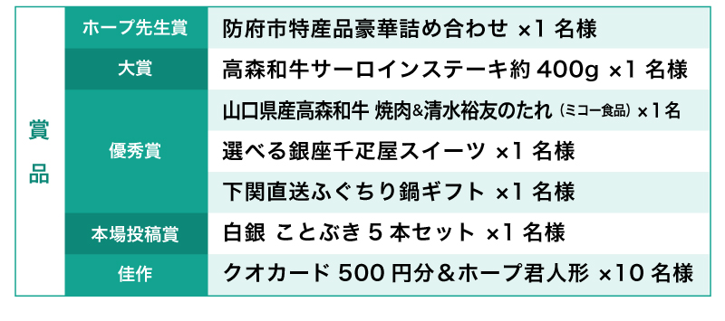 ※「本場投稿賞」は防府競輪場にて投函された作品より選ばれる。