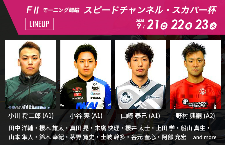 FⅡ モーニング競輪 スピードチャンネル・スカパー杯 令和7年9月21日(日)〜9月23日(火) 防府競輪『キャッシュバックキャンペーン』 優勝者当てクイズ 自転車で防府競輪場へ行こう オリジナルタオル投入ファンサービス 詳細はこちら